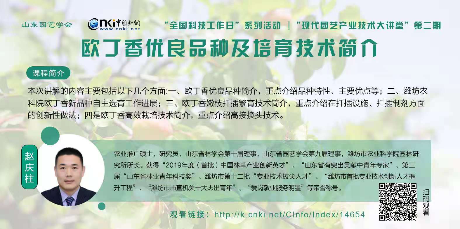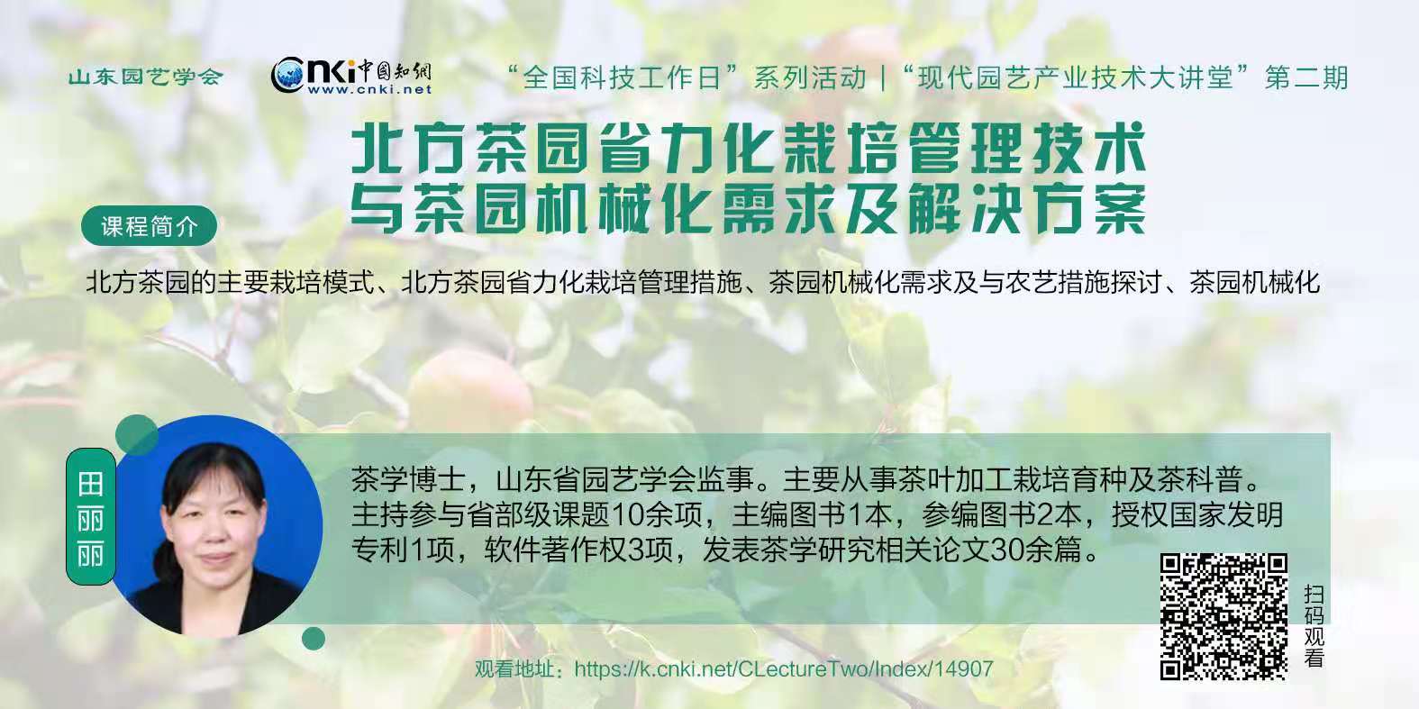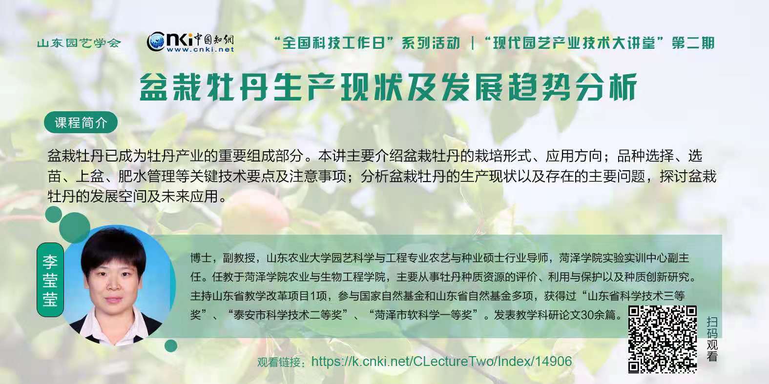 “山东园艺学会现代园艺产业技术大讲堂”第二期,来自山东省果树研究所、山东农业大学、潍坊市农业科学院、菏泽学院的园艺界专家给大家带来了关于园林、茶学、果树、蔬菜等方面精彩的课堂演讲。敬请大家扫码或点击图片下方链接观看!