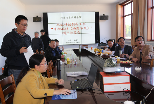 “苹果现代矮砧集约机械化栽培模式关键技术集成示范”试验园,2017年春定植的烟富3/M9T337(三年生苗),采用现代矮砧集约栽培模式,株行距1.5米×3.8米,实行大苗建园、起垄覆盖、行间生草、高纺锤树形、水肥一体化等栽培技术。测产结果:单株坐果数119个,平均单果重296.4克,折合亩产量4126.8公斤,优质果率85.5%,可溶性固形物含量14.1%,果肉硬度8.96 公斤/平方厘米。“农产品质量安全追溯系统”试验园,测试结果:示范应用的农产品质量安全追溯系统,具备农资管理、生产档案管理、生产计划管理、流通管理、追溯标签管理等功能。示范园可追溯系统设备较为完善,功能齐备,实现对农产品从生产到餐桌每个环节的质量安全溯源。24日上午,山东省农科院邀请省内相关专家,对“苹果现代矮砧集约机械化栽培模式关键技术集成示范”试验园、“农产品质量安全追溯系统”试验园进行现场测产验收和测试验收。专家组听取了项目组的汇报,审阅了相关材料,经讨论、质疑,形成测产验收和测试验收意见。